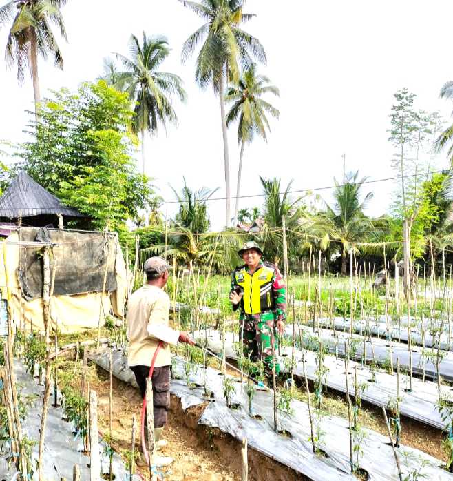 MabesNews.tv – Bireuen – Serda Gusli, Babinsa Koramil 03 Jeunieb, melaksanakan monitoring terhadap para petani cabai di Desa Belang Rale, Kecamatan Jeunieb, Kabupaten Bireuen. Senin (08/09/2025).