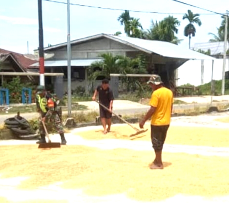 Dalam kesempatan tersebut, Koptu Munawarah membantu Bapak Muslem, salah satu warga setempat, menjemur padi hasil panen dari sawah. Penjemuran dilakukan agar padi dapat kering dengan baik sebelum disimpan, sehingga terhindar dari pertumbuhan jamur yang dapat menurunkan kualitas beras.