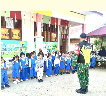Babinsa Koramil 09/Makmur Beri Wawasan Kebangsaan dan Disiplin Sejak Dini di TK Makmur.