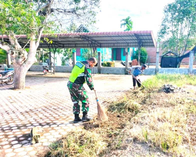 MabesNews.tv : Bireuen – Serda Muntahar, Babinsa Koramil 09/Makmur Kodim 0111/Bireuen bersama warga melaksanakan gotong royong pembersihan halaman Masjid Baitussaadah di Desa Ulee Gle, Kecamatan Makmur, Kabupaten Bireuen. Rabu (03/09/2025).