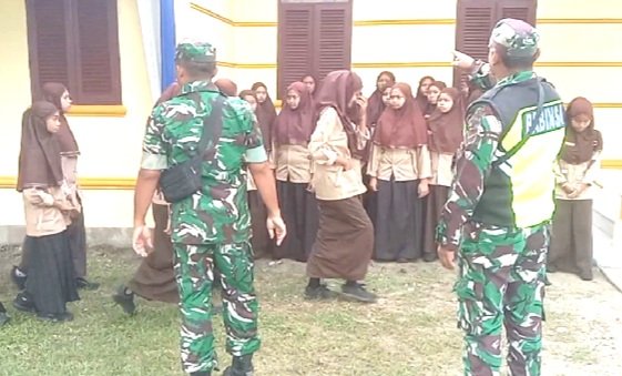Babinsa Pos Ramil Peusangan Selatan Latih PBB dan Wawasan Kebangsaan di SMPN 1 Peusangan Selatan.