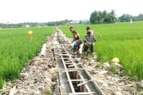 Perbaikan saluran irigasi ini bertujuan untuk mendukung kelancaran proses pertanian di desa binaan, sehingga kebutuhan air bagi sawah warga dapat terpenuhi secara maksimal.