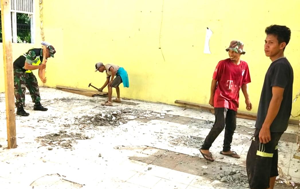 Kegiatan gotong royong tersebut difokuskan pada perehaban bangunan sekolah yang akan direnovasi. Kehadiran Babinsa bersama masyarakat menjadi wujud kepedulian TNI dalam mendukung pendidikan sekaligus mendorong semangat kebersamaan di tengah masyarakat.