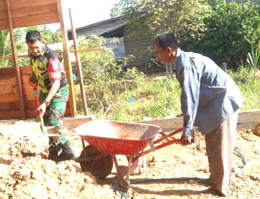 MabesNews.tv–Bireuen – Babinsa Posramil Kuta Blang Kodim 0111/Bireuen, Koptu Abdul Haris, turut membantu warga desa binaannya dalam kegiatan penimbunan emperan perkarangan rumah di Desa Tingkeum Manyang, Kecamatan Kuta Blang, Kabupaten Bireuen. Kamis (04/09/2025).