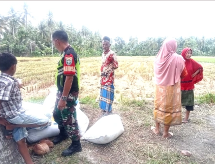 Babinsa Posramil Peulimbang Bantu Warga Panen Padi dan Pantau Harga Gabah di Desa Kuta Trieng.