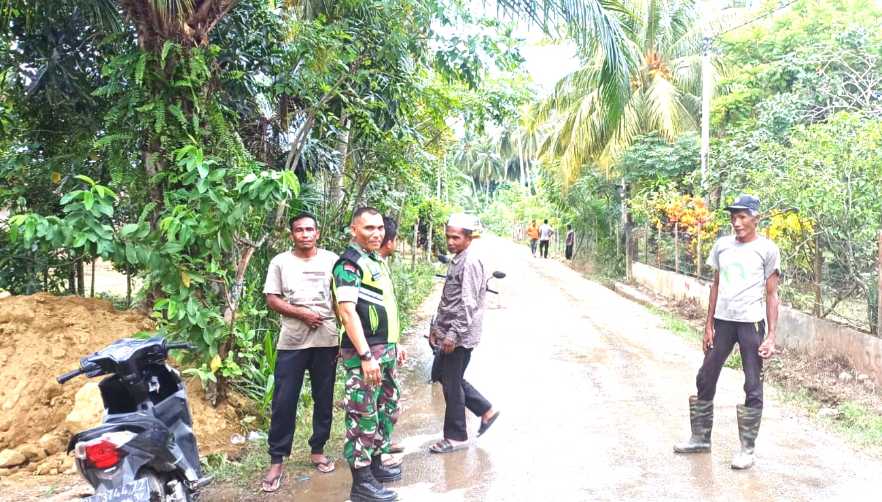 Babinsa Posramil Peulimbang Dampingi Keuchik Pantau Pengerasan Jalan Usaha Tani di Desa Lancok Bungo.