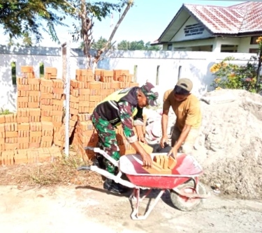 Babinsa Posramil Simpang Mamplam Bantu Warga Bangun Dapur Rumah di Desa Blangteumelik.