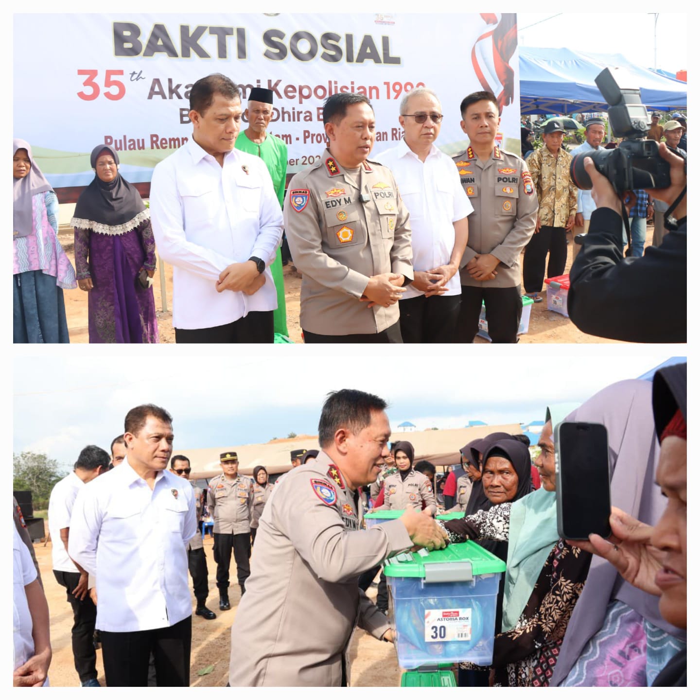 MABESNEWS.TV, Batam – Korps Binmas Baharkam Polri menyelenggarakan bakti sosial dalam rangka memperingati 35 Tahun Ikatan Keluarga Dhira Brata (IKDB) Alumni Akpol Angkatan 1990 di Perumahan Rempang Eco City, Kelurahan Sembulang, Kecamatan Galang, Batam. Kegiatan dengan tema “Bersama Berbagi Tak Bertepi” ini dihadiri oleh sejumlah pejabat tinggi Polri dan diterima dengan antusias oleh masyarakat setempat.