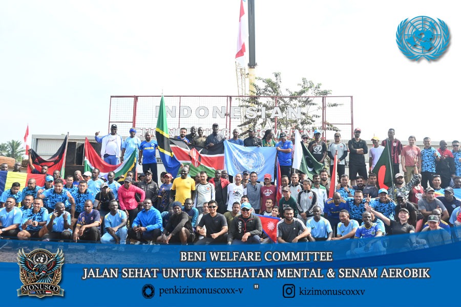 Mabesnews.Tv, -Republik Demokratik Kongo – Dalam rangka mendukung kesehatan fisik dan mental seluruh personel serta komunitas yang berada di wilayah Beni, Beni Welfare Committee bekerja sama dengan Indonesia MAVIVI Base – IEC (Indonesian Engineering Company) menyelenggarakan kegiatan bertajuk “Walk for Mental Health and Aerobics” pada Sabtu, 4 Oktober 2025.