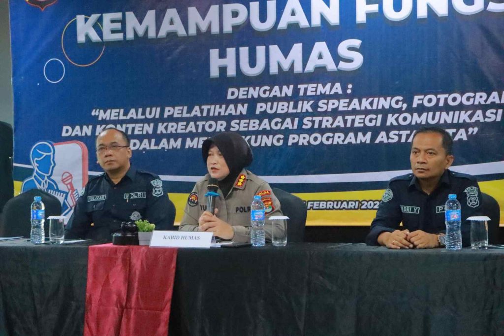 Kepala Bidang Hubungan Masyarakat (Kabid Humas) Polda Lampung Kombes Pol Yuni Iswandari Yuyun, secara resmi membuka kegiatan Peningkatan Kemampuan Fungsi Humas yang digelar di Hotel Kryiad. Kamis (27/2/2025)