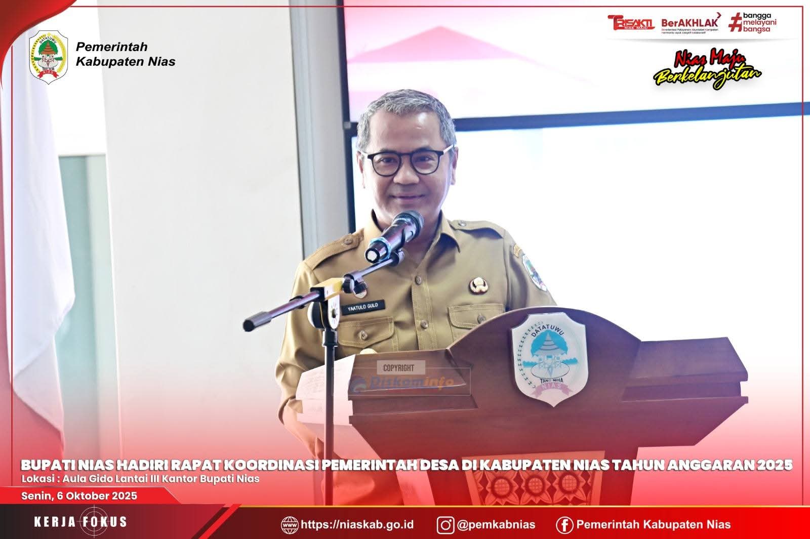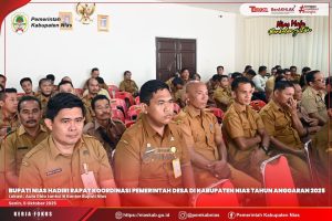 Nias | MabesNewsTV Pemerintah Kabupaten Nias menggelar Rapat Koordinasi (Rakor) Pemerintahan Desa Tahun Anggaran 2025 sebagai upaya mengoptimalkan pelaksanaan, evaluasi, dan pelaporan penyelenggaraan pemerintahan desa.