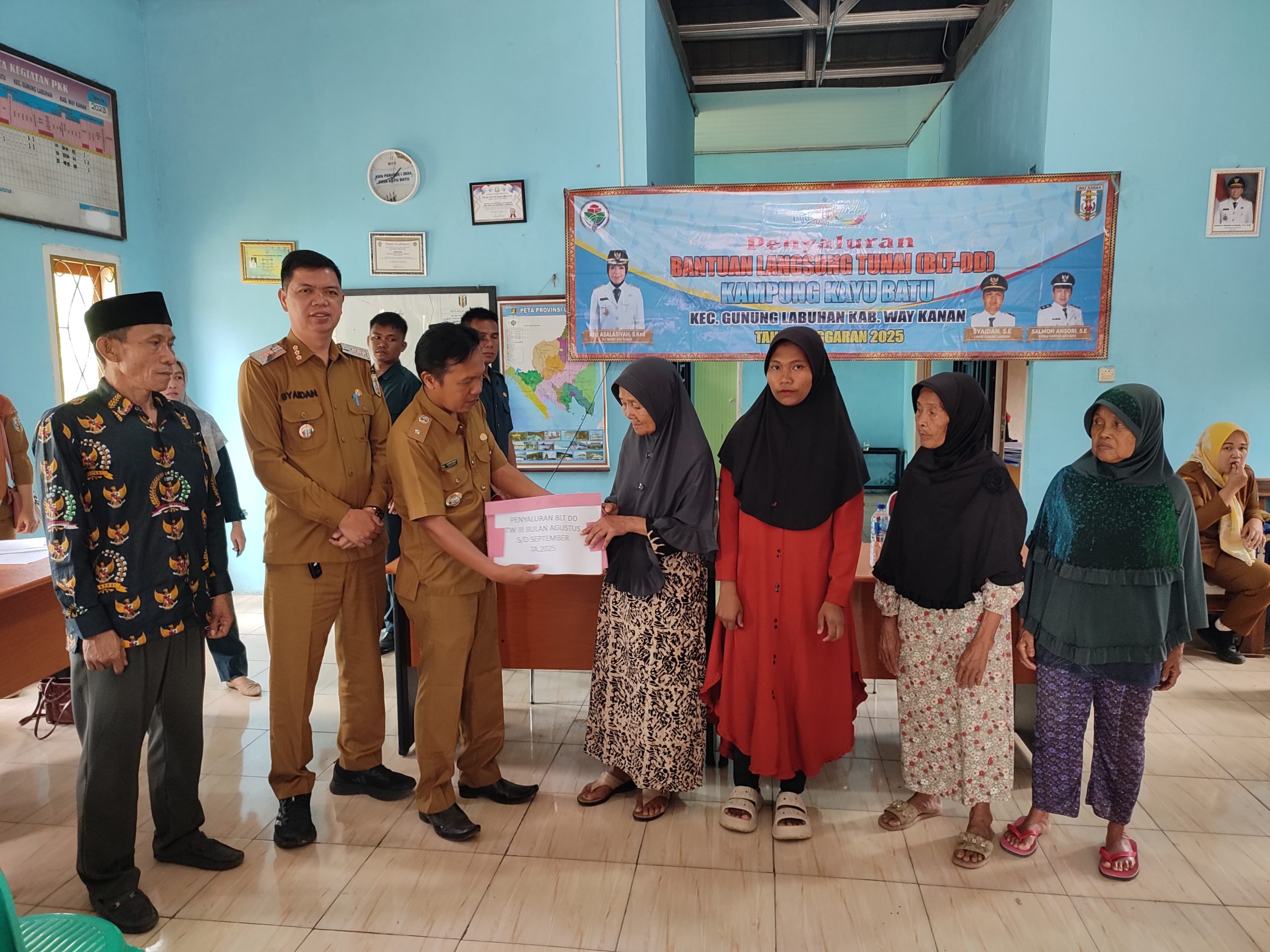 Mabesnews.tv, Pemerintah Kampung Kayu Batu, di bawah naungan Kecamatan Gunung Labuhan, Kabupeten way kanan baru-baru ini mengadakan acara penyaluran Bantuan Langsung Tunai Dana Desa (BLT DD) Triwulan 3 kepada 20 Keluarga Penerima Manfaat (KPM) Camat Gunung Labuhan beserta jajarannya, yang hadir langsung untuk dampingi kegiatan acara BLT DD, di Kantor Pemerintah Kampung Kayu Batu, Selasa (30 September 2025)