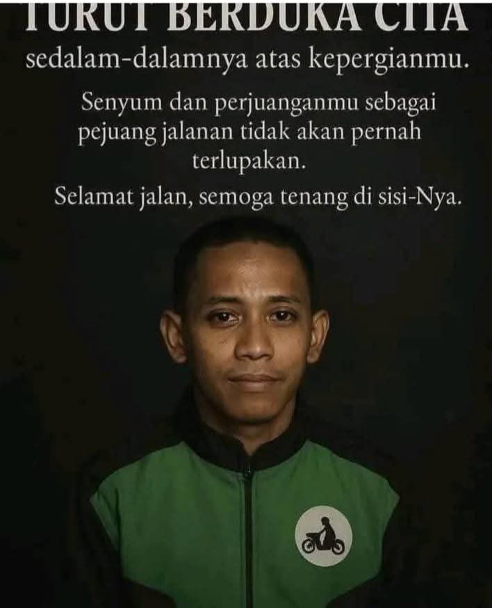 Seorang pengemudi ojek online (ojol) dilaporkan tewas setelah terlindas kendaraan taktis milik Brimob dalam insiden kericuhan antara demonstran dan aparat kepolisian di kawasan Pejompongan, Tanah Abang, Jakarta Pusat, pada Kamis malam (28/8/2025).