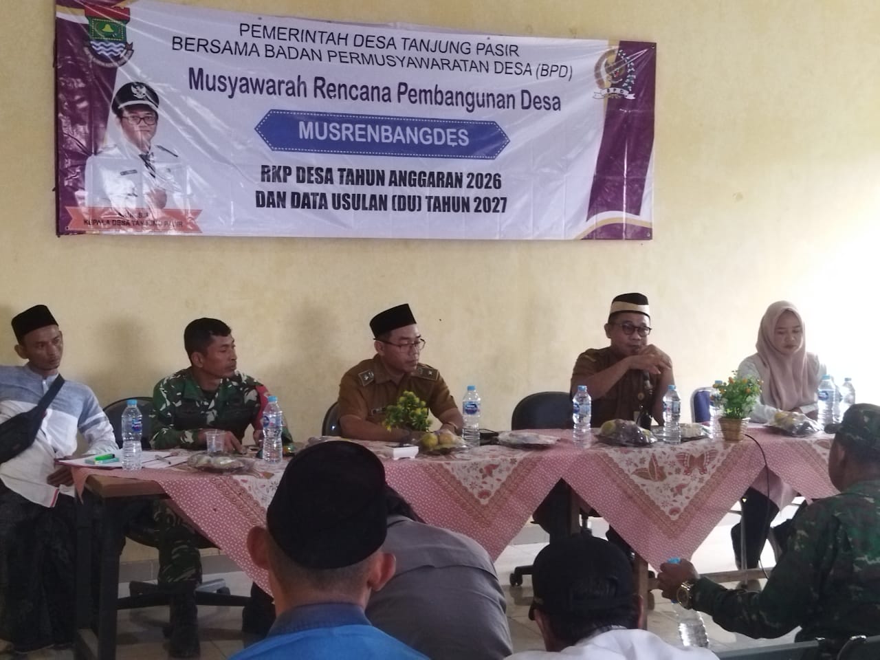 Tangerang, 29 September 2025 – Pemerintah Desa Tanjung Pasir bersama Badan Permusyawaratan Desa (BPD) menggelar Musyawarah Rencana Pembangunan Desa (Musrenbang) untuk Rencana Kerja Pemerintah (RKP) Desa Tahun Anggaran 2026 sekaligus pendataan usulan (DU) tahun 2027. Kegiatan ini berlangsung di Aula Kantor Desa Tanjung Pasir, Kecamatan Teluknaga, Kabupaten Tangerang.