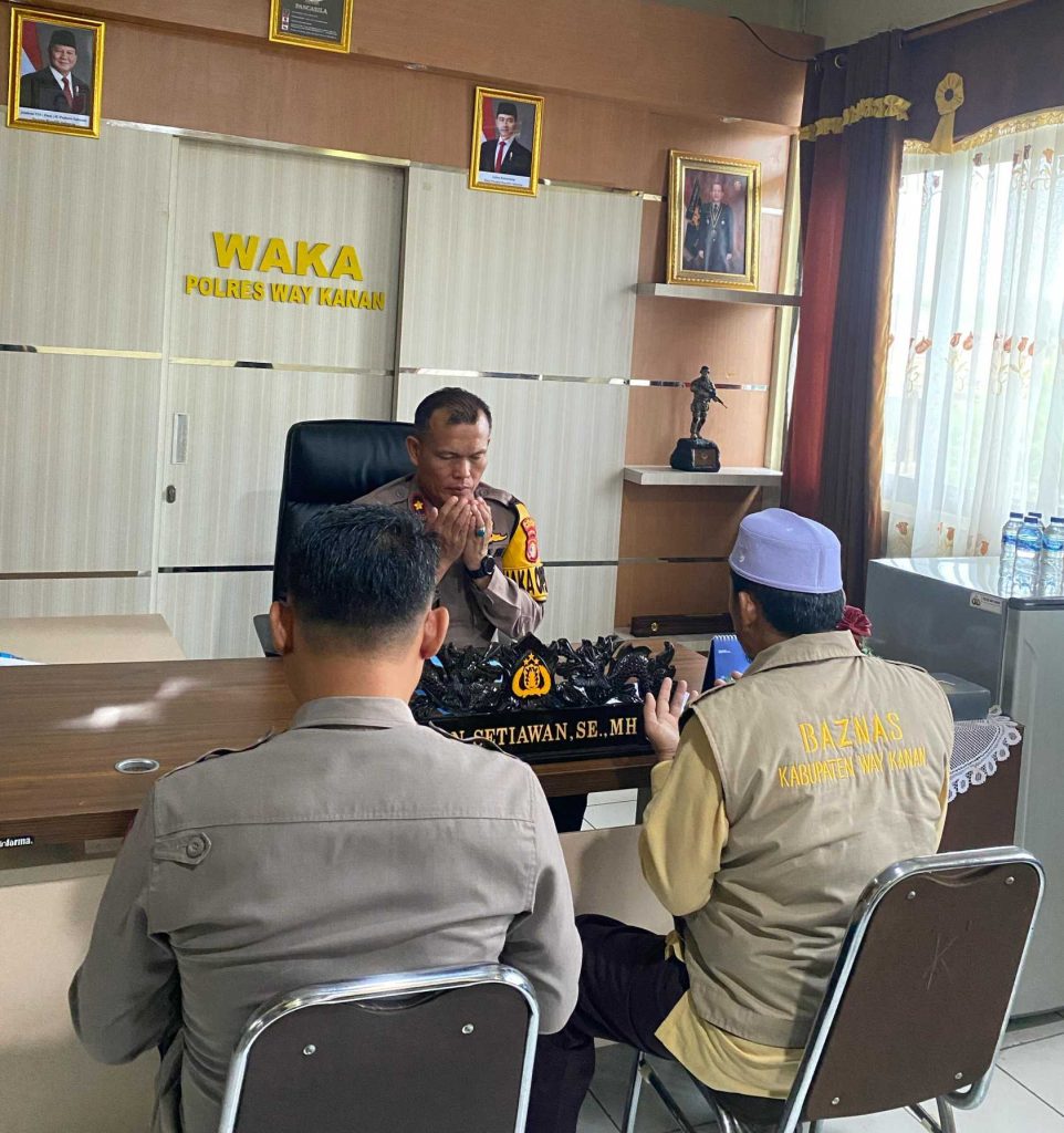 Ketua Baznas Kabupaten Way Kanan menyampaikan alhamdulillah pada pagi menjelang siang ini menerima undangan dari Kapolres Way Kanan untuk berzakat di Baznas Kabupaten Way Kanan.