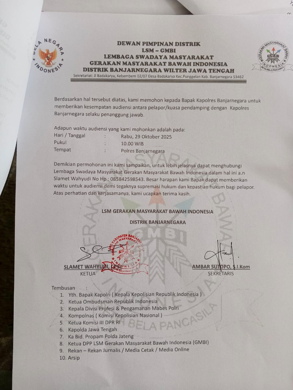 Dianggap lambai dalam penanganan. kasus tersebut akhirnya ketiga korban pelapor lakukan Audensi Ke Pihak polres Banjarnegara melalui LSM GMBI yang sejak pertama mengawal.kasus ini, dan Audensi dilaksanakan di Mapolres Banjarnegara, pada Rabu(29/10/2025)