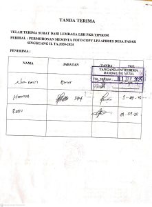 Sekretaris DPC LBH PKR TIPIKOR inisial KD menyebut “ saya telah dipanggil inspektorat dan telah memberikan keterangan ke inspektorat, dikarenakan DPC PKR sangat butuh bukti yang kongkrit, klarifikasi dalam pembuktian dilapangan, DPC PKR telah meminta foto copy LPJ APBDes ke dinas PMD namun tidak ada tanggapan,harunya PMD Madina tidak merahasiakan APBDes tersebut,dan harusnya transparan kepada semua orang.
