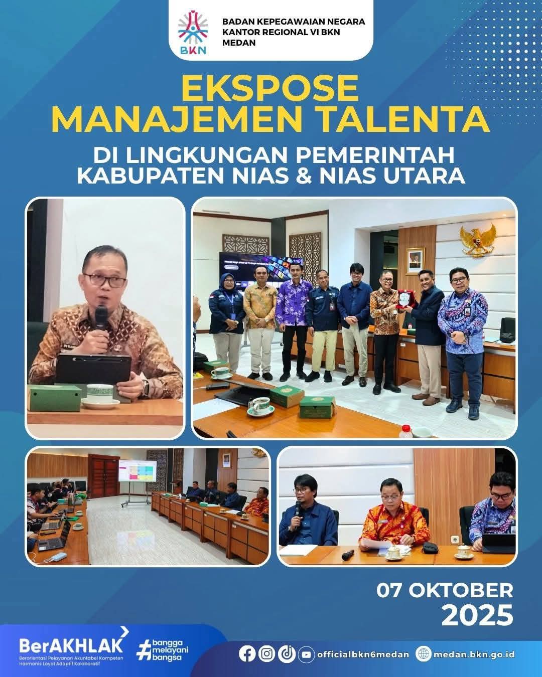 Melalui ekspose ini, diharapkan Pemerintah Kabupaten Nias dan Pemerintah Kabupaten Nias Utara dapat memperoleh masukan strategis dari BKN dalam memperkuat pelaksanaan Manajemen Talenta ASN di daerah, sekaligus menjadi langkah dalam mewujudkan ASN profesional, kompeten, dan berintegritas di wilayah Kepulauan Nias.