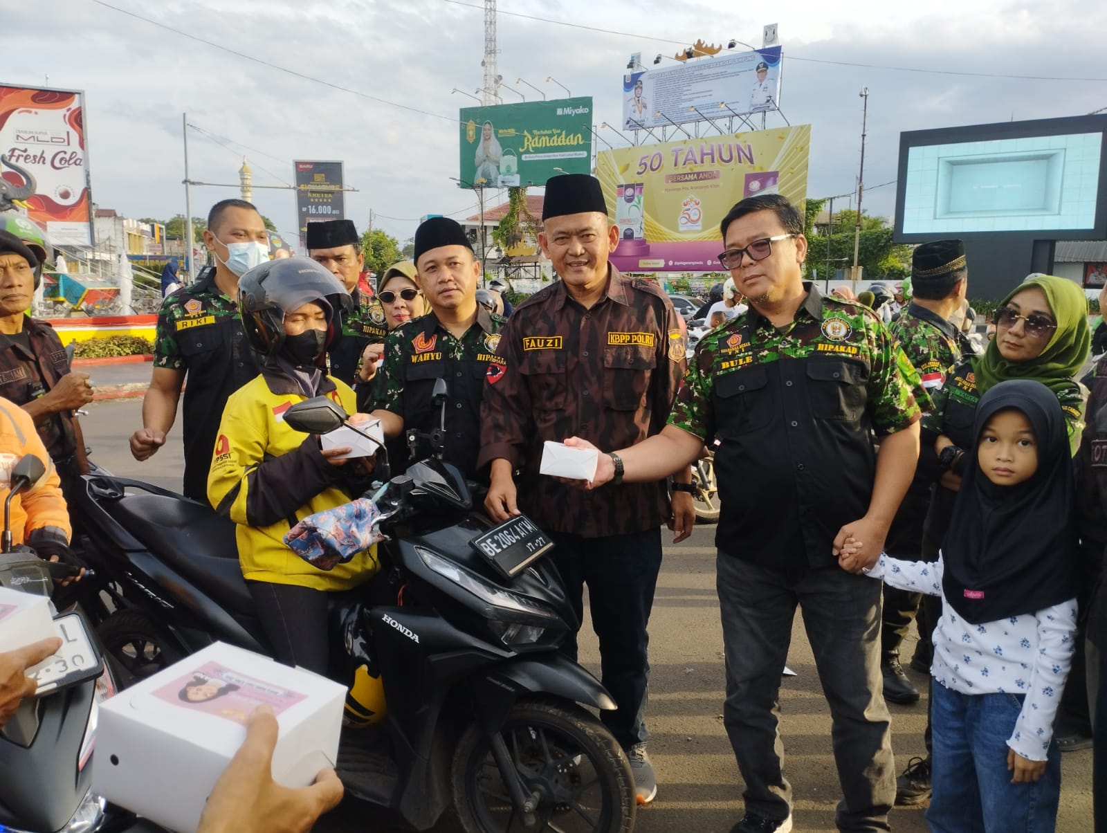 Dalam rangka menyambut bulan suci Ramadhan, dua organisasi besar yang berfokus pada kemanusiaan, yaitu Himpunan Putra-Putri Keluarga Angkatan Darat (HIPAKAD) dan Keluarga Besar Putra-Putri Polri (KBPPP), menggelar aksi sosial berbagi takjil untuk masyarakat di Bundaran Gajah, Kota Bandar Lampung, pada hari jumat sore (21/3/2025).