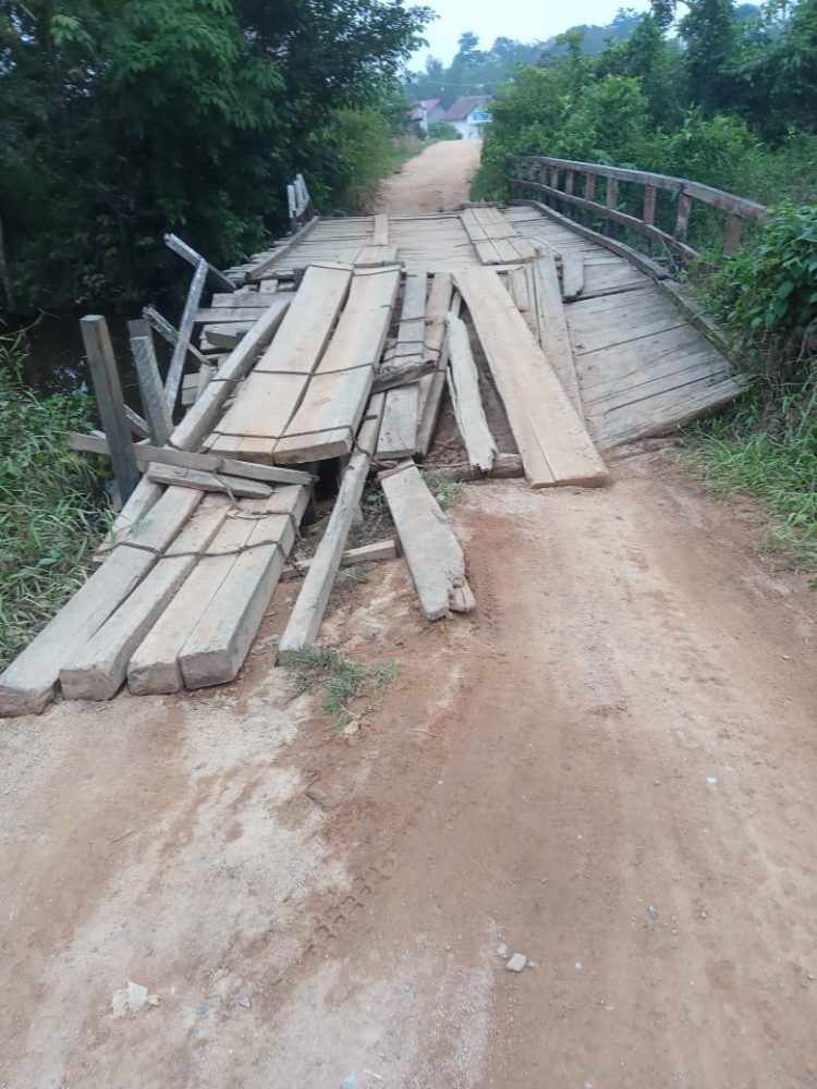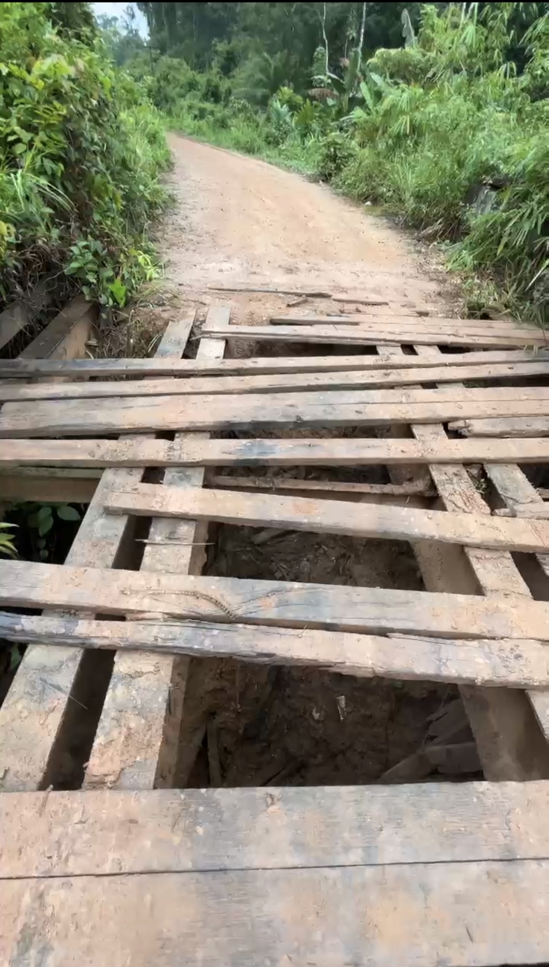 Menurut informasi yang dihimpun media ini bahwa jembatan yang saat ini mengalami kerusakan berat dan nyaris ambruk ini terbuat dari bahan kayu dan juga jembatan tersebut adalah jembatan yang setiap hari di pergunakan sebagai lalu lintas warga masyarakat di kedua desa tersebut,namun kini kondisi jembatan mengalami kerusakan yang sangat berat sekali.