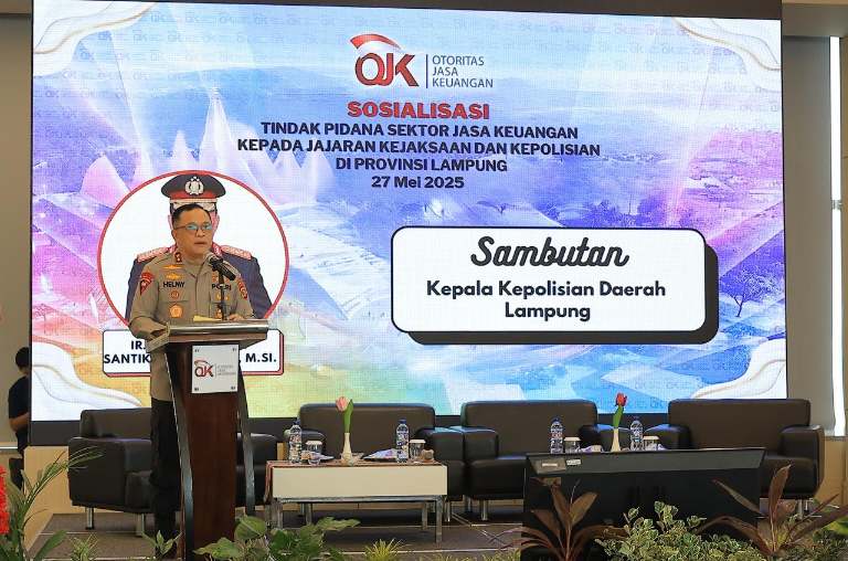 Dalam sambutannya, Irjen Pol Helmy Santika selaku Kapolda Lampung menyampaikan, “Kejahatan di sektor jasa keuangan semakin kompleks dan berdampak luas terhadap stabilitas ekonomi masyarakat. Oleh karena itu, pemahaman mendalam tentang modus operandi, regulasi, dan langkah pencegahan menjadi kunci bagi jajaran kepolisian dalam upaya penegakan hukum”,