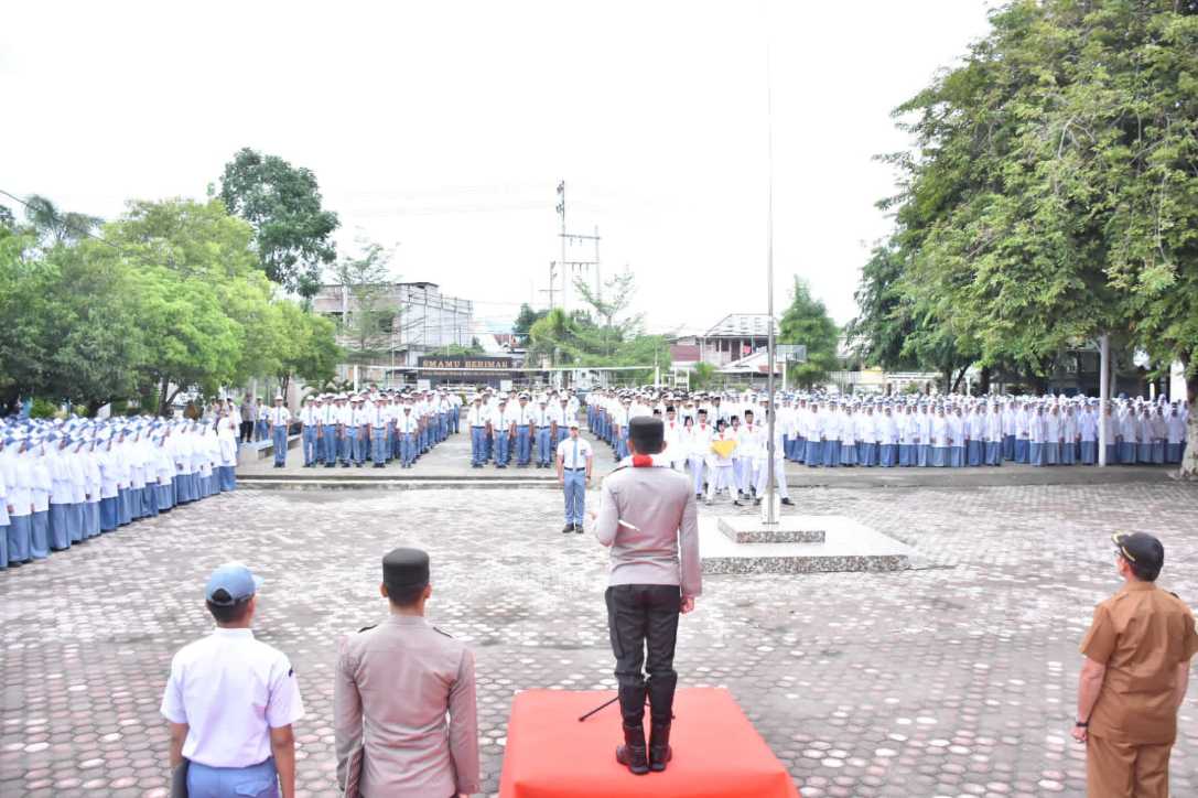 MabesNews.tv- Bireuen – Kapolres Bireuen AKBP Tuschad Cipta Herdani, S.I.K., M.Med., Kom., pimpin Upacara Bendera di SMAN 1 Bireuen, Senin 15 September 2025