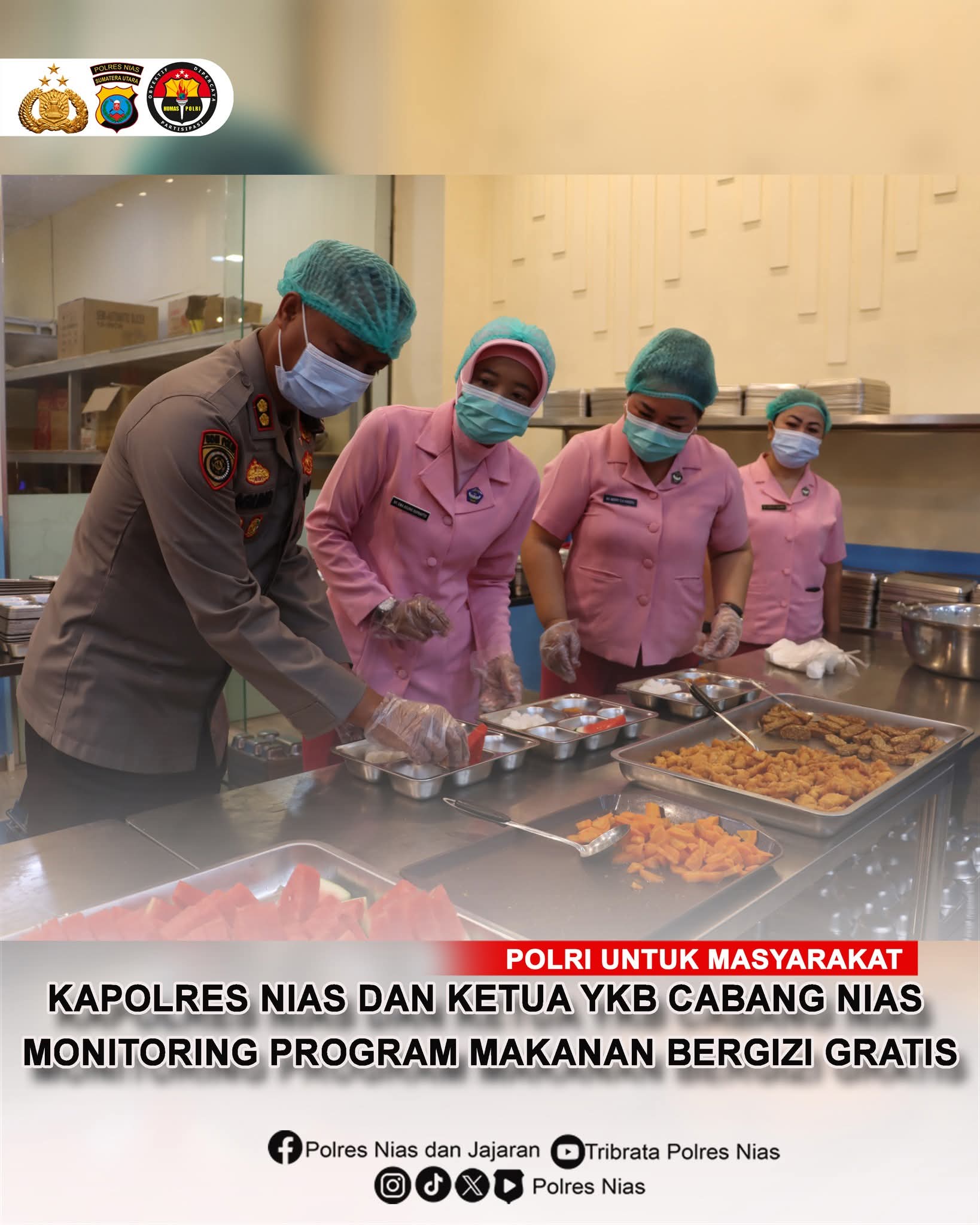 Kapolres Nias menyampaikan bahwa kegiatan ini merupakan bentuk pengawasan dan tanggung jawab Polres Nias bersama YKB dalam menjamin penyaluran makanan bergizi yang aman dan berkualitas bagi anak-anak di lingkungan sekolah.