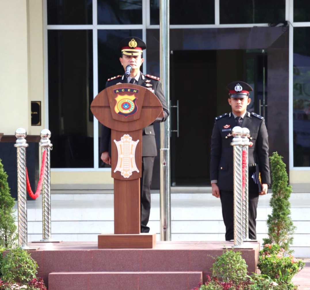 Upacara dipimpin langsung oleh Kapolres Pidie Jaya, AKBP Ahmad Faisal Pasaribu, S.H., S.I.K., M.H., yang bertindak sebagai Inspektur Upacara. Sedangkan Kabag SDM Polres Pidie Jaya, AKP Mahyuddin, S.H., M.M., ditunjuk sebagai Perwira Upacara.