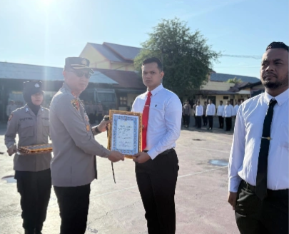 Pada kesempatan tersebut, sebanyak 23 personel Polres Pidie menerima piagam penghargaan dari Kapolres Pidie atas dedikasi dan prestasi mereka dalam melaksanakan tugas kepolisian.