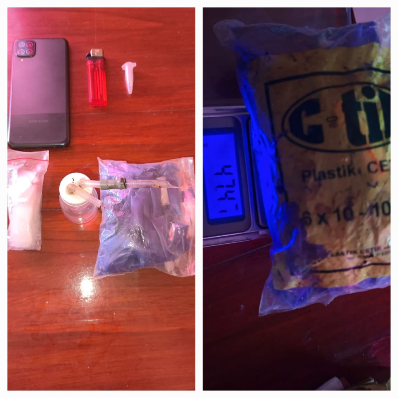 Penangkapan dilakukan pada Kamis (18/9/2025) sekira pukul 00.30 WIB di depan rumah tersangka. Dari tangan AI, polisi menemukan satu poket plastik berisi sisa sabu yang telah digunakan. Saat dilakukan penggeledahan lebih lanjut di rumahnya, ditemukan barang bukti lain berupa 108 klip sabu dengan berat kotor total 47,46 gram dan berat bersih 6,79 gram, satu alat hisap (bong), satu korek api, sebuah handphone, serta plastik klip kosong.