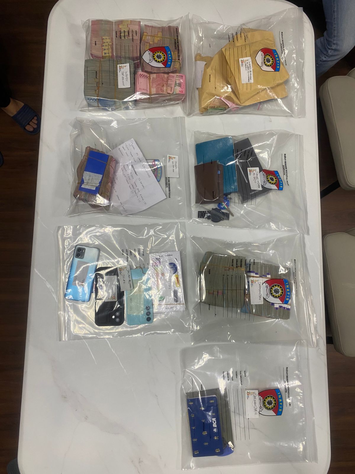 Dalam kasus ini, Ditreskrimum turut mengamankan barang bukti berupa satu unit mobil Honda HRV warna putih, satu unit mobil Mitsubishi Triton warna putih, satu unit sepeda motor Vespa Sprint warna hitam, tiga unit telepon genggam (satu iPhone 16 Pro Max, dua iPhone 16 Pro), satu unit Samsung Galaxy S25 Ultra, satu unit Apple Watch, satu unit headset Apple AirPods, perhiasan emas berupa tujuh cincin, dua kalung, satu gelang, serta uang tunai Rp 1.006.000.000.