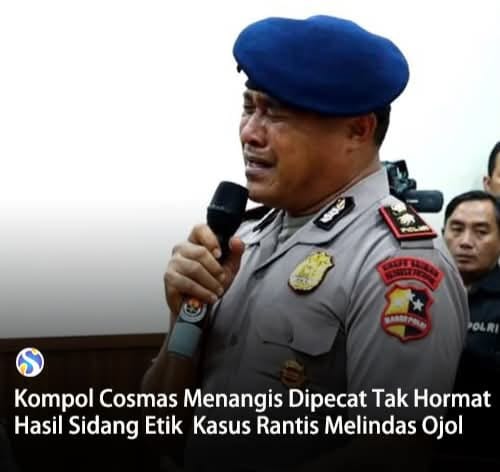 “Setelah kejadian video viral kami ketahui setelah beberapa jam berikutnya melalui medsos dan kesempatan ini pula saya mohon maaf ke pimpinan Polri atau rekan-rekan Polri yang sedang bertugas menjaga keamanan dan ketertiban umum,” ujar Kompol Cosmas yang tangisnya pecah saat menyampaikan permohonan maafnya itu.