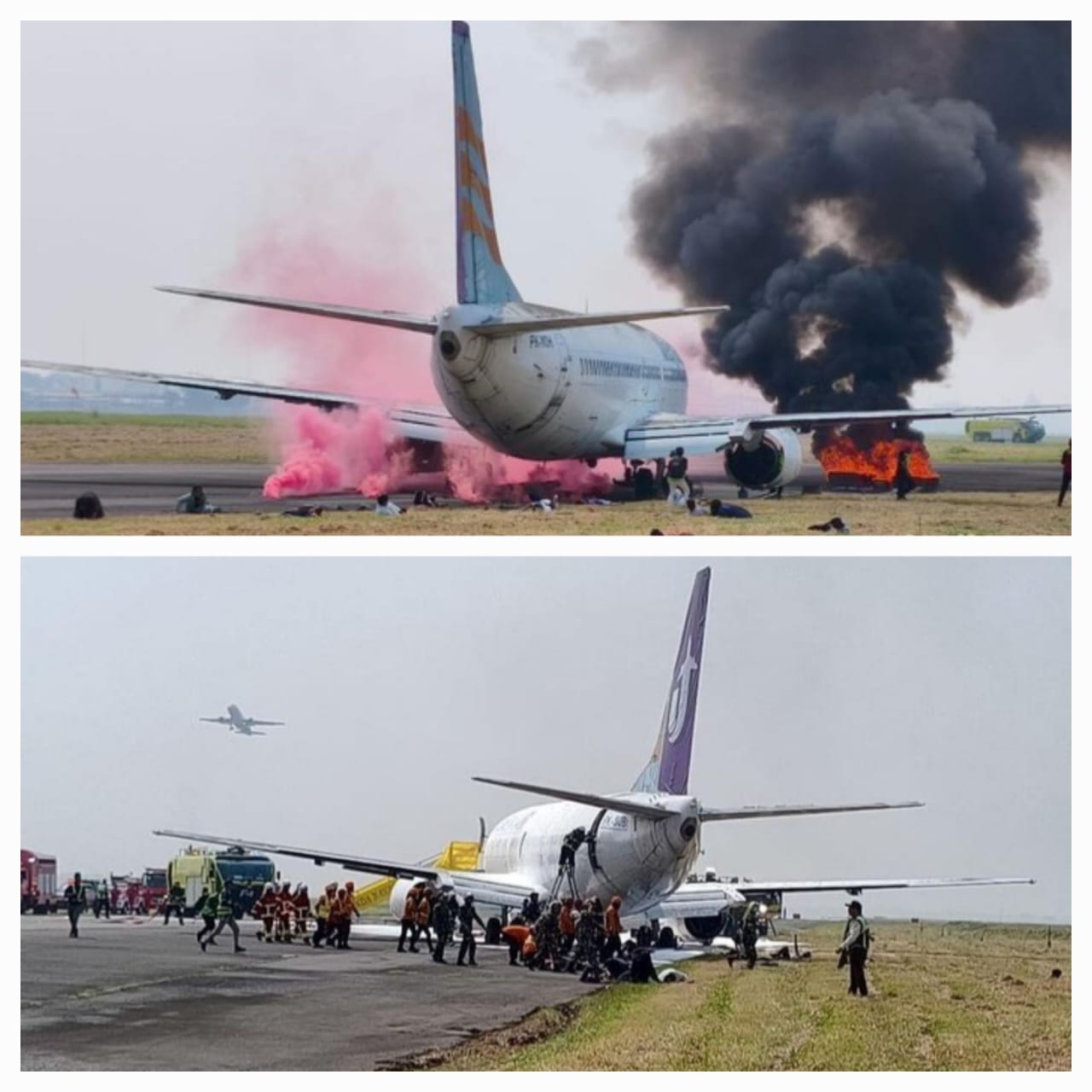 Tim ARFF (Airport Rescue and Fire Fighting) langsung menuju lokasi untuk pemadaman dan evakuasi, sementara Emergency Operation Center (EOC) diaktifkan. Hasil simulasi mencatat 54 penumpang luka berat, 81 luka sedang, 135 luka ringan, dan 90 meninggal dunia.