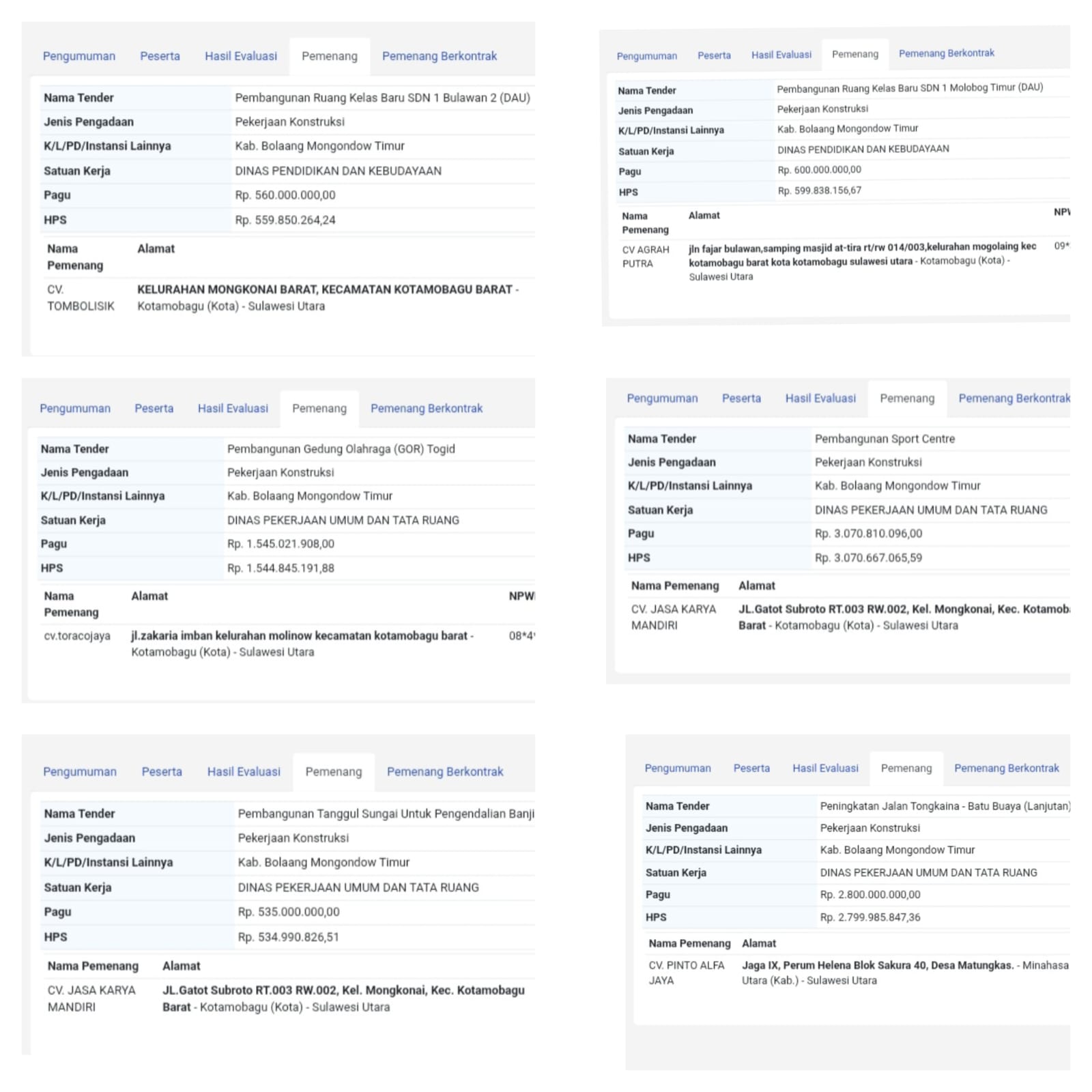 MabesNews.Tv, Boltim,Sulut- Pemerintah Kabupaten Bolaang Mongondow Timur (Boltim), Provinsi Sulawesi Utara (Sulut) dibawah pimpinan Bupati Oskar Manoppo dan Wakil Bupati Argo Sumaiku melalui panitia Pengadaan Barang dan Jasa (PBJ) Jumat (19/9/2025) kembali mengumumkan perusahan pemenang tender sejumlah paket proyek di lingkungan Pemda Boltim.