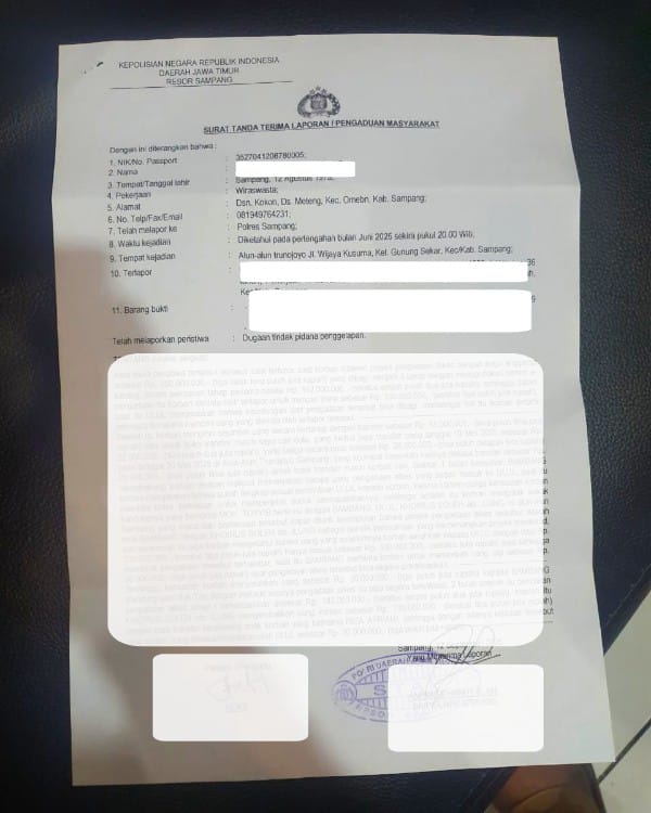 “Kami minta polisi serius dan jangan main-main. Uang kami jelas, bukti ada. Kalau kasus ini dibiarkan menguap, sama saja aparat ikut melindungi pelaku,” tandas korban