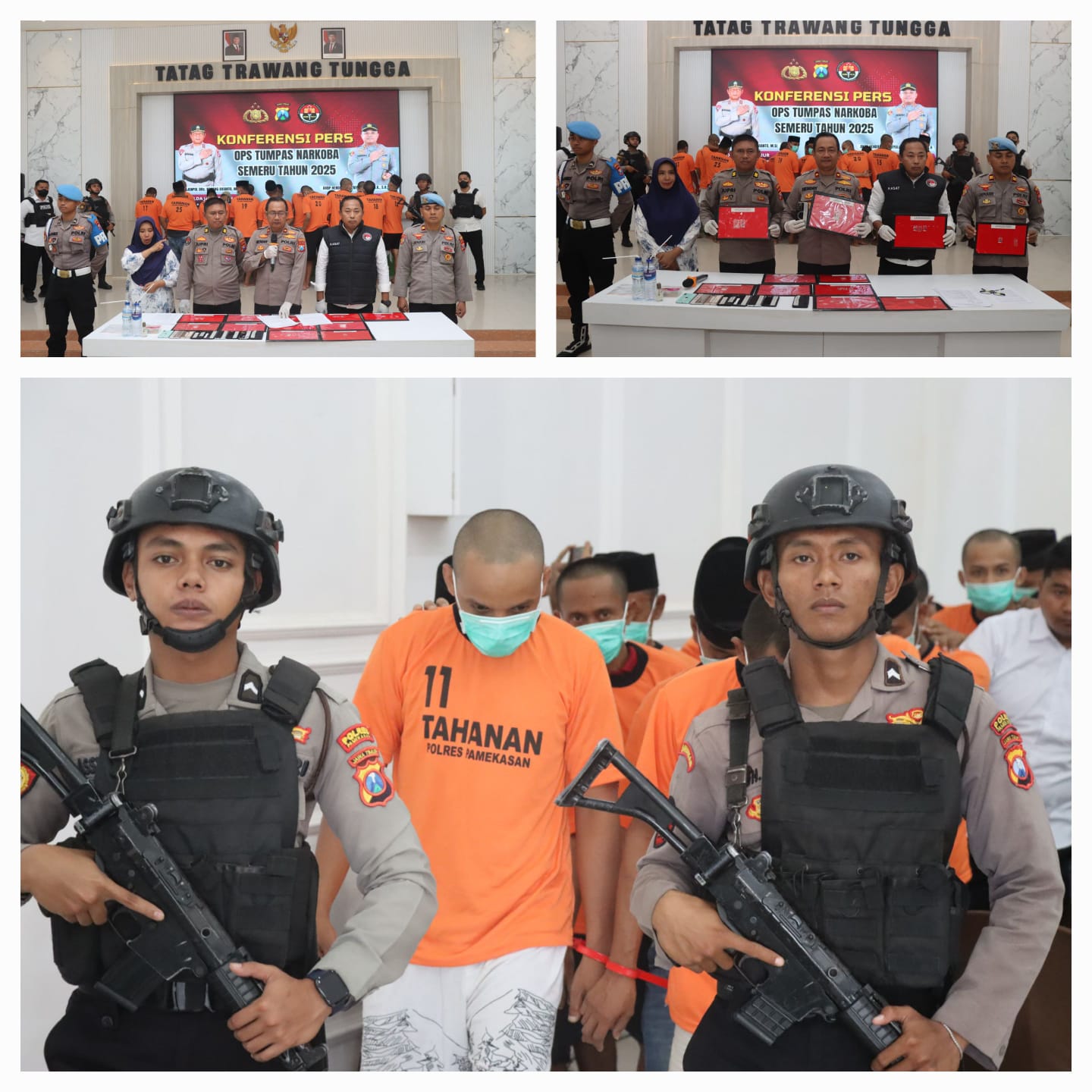 MABESNEWS.TV, PAMEKASAN Jawa Timur- Jajaran Polres Pamekasan khususnya dari Satuan Reserse Narkoba Polres Pamekasan melaksanakan giat Konfirmasi Pers hasil ungkap kasus Operasi Kepolisian kewilayahan dengan sandi Tumpas Narkoba Semeru 2025.