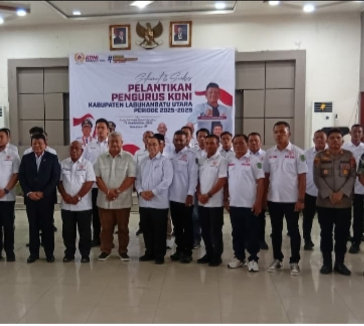 MabesNews.tv, Labuhanbatu Utara ( Labura ) Sumut – Pengurus komite olah raga Nasional Indonesia( KONI )kabupaten labuhanbatu Utara ( Labura )priode 2025/2029,secara resmi di kukuhkan dan di Lantik oleh ketua umum KONI provinsi sumtera Utara kolonel purn hatunggal siregar, pelantikan di hadiri langsung oleh bupati Labuhanbatu Utara Dr, H. Hendriyanto Sitorus SE MM, dan Wakil bupati Labuhanbatu Utara Dr, H.syamsul tanjung ST, MH.dan Kapolsek kualuhhulu, AKP, Nelson Silalahi SH, MH.suasana cukuf meriah. Haru dan penuh semangat,mewarnai pelantikan dan pengukuhan siang itu di aula Dwi syukur komplek kantor bupati Labuhanbatu Utara.Aek kanopan Rabu ( 17/09.) pukul 14.00.wib.