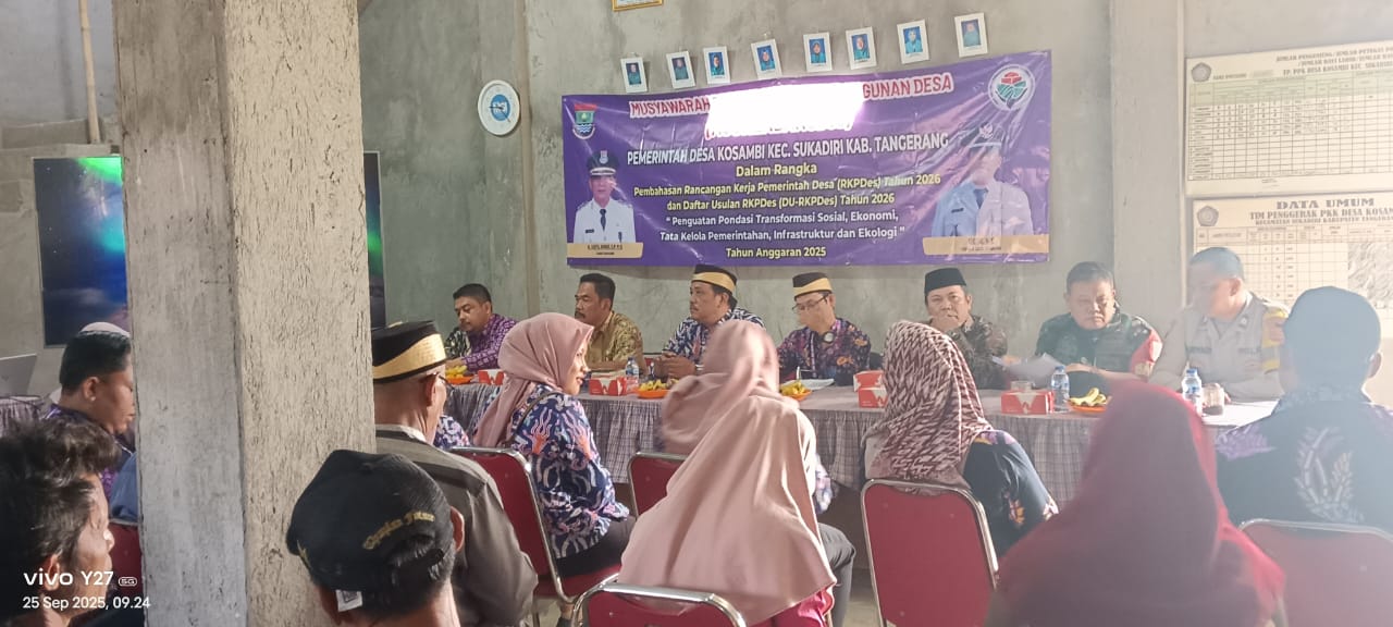 Mabesnews.tv, Kabupaten tangerang-pemerintah desa Kosambi 25 September 2025 —seketaris kecamatan (sekcam), Kasi Pembangunan Kecamatan bersama staf menghadiri Musyawarah Perencanaan Pembangunan (Musrembang) RKP Desa Tahun 2026 yang dilaksanakan di desa kosambi, kecamatan sukadiri. Kegiatan acara ini diawali dengan menyanyikan lagu Indonesia Raya, dilanjutkan dengan sambutan-sambutan dari para pihak terkait.