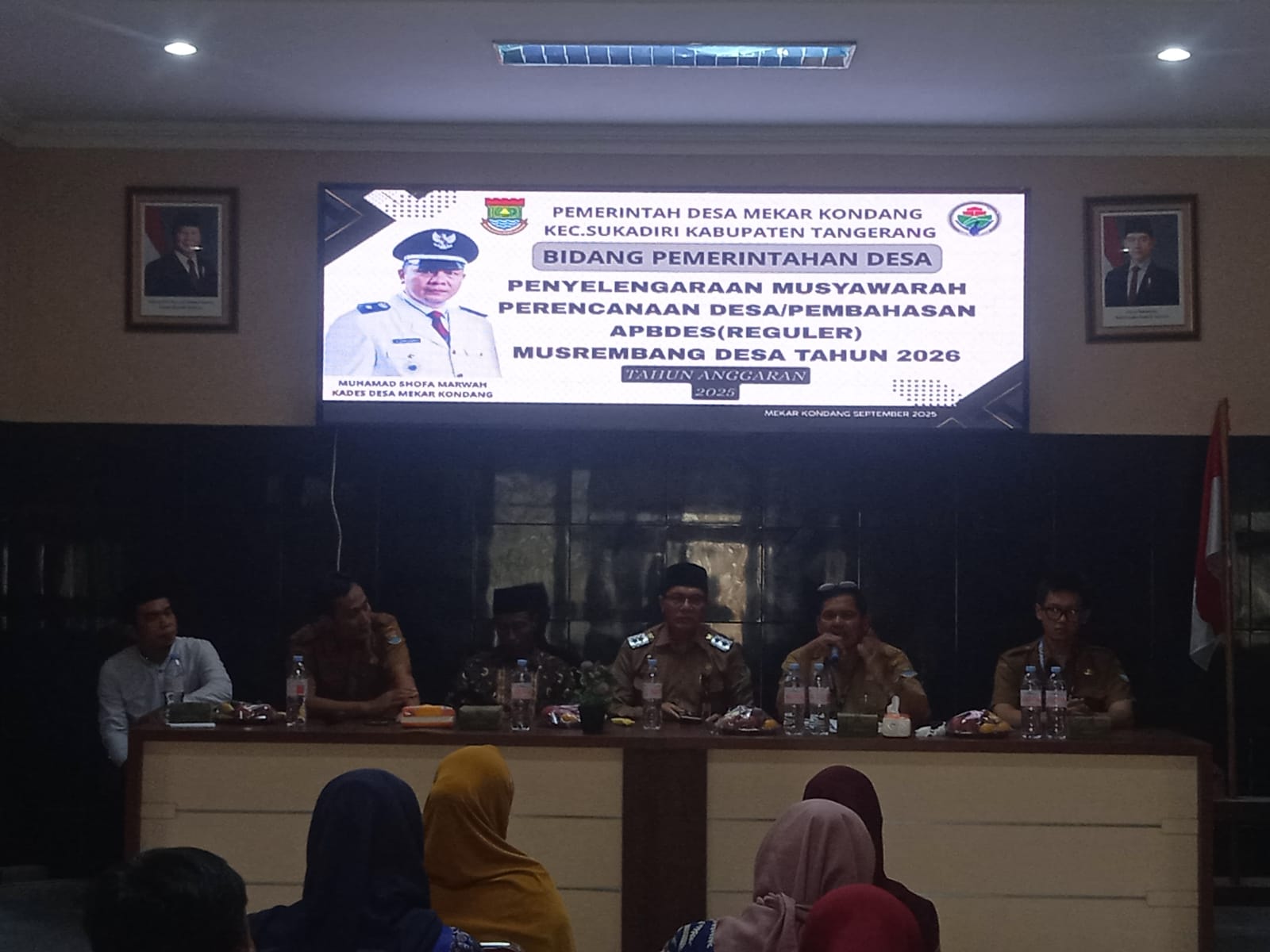Mabesnews.tv- kabupaten tangerang- selasa pemerintah Desa mekar kondang melaksanakan musyawarah perencanaan pembangunan desa tahun anggaran 2026 kecamatan sukadiri, kemudian, ‘ ujar Muhamad Shofa Marwah, allhamdulilah ya hari ini desa mekar, kondang, ada jadwal musrenbang tingkat desa, ya diberi jadwal sama kecamatan ya.