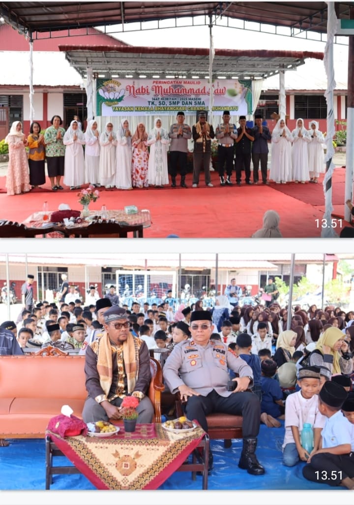 MabesNews.tv, Labuhanbatu Sumut –  Wakapolres Labuhanbatu Kompol H. Matondang, S.H., M.H., menghadiri kegiatan peringatan Maulid Nabi Muhammad SAW 1447 H yang digelar di Yayasan Kemala Bhayangkari Cabang Labuhanbatu, bertempat di Sekolah Kemala Bhayangkari 2 Jalan Skip, Kecamatan Rantau Utara, Kabupaten Labuhanbatu, Kamis (18/9/2025).