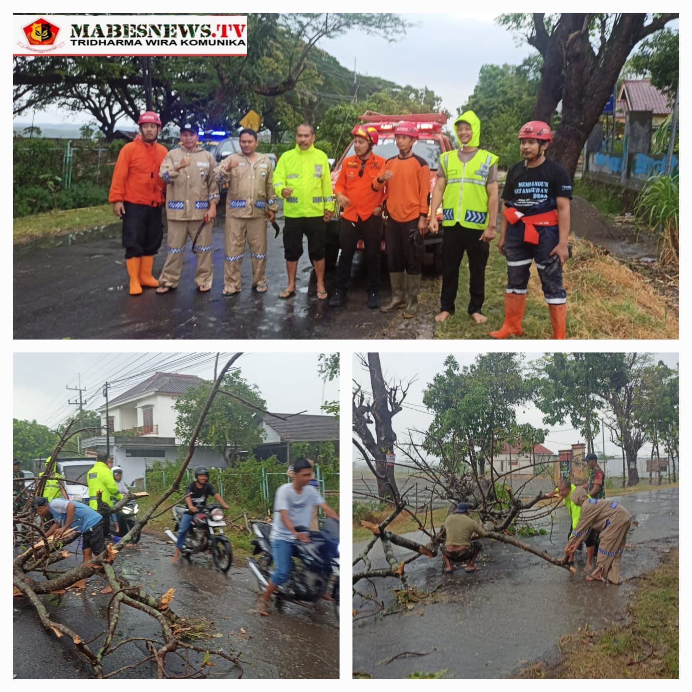 MABESNEWS.TV, Nganjuk Jawa Timur – Hujan deras disertai angin kencang menyebabkan sebuah pohon tumbang di Jalan Raya Guyangan Tamanan, Desa Rejoso, Kecamatan Rejoso, Kabupaten Nganjuk, Senin (29/9/2025) sore. Polisi bersama TNI dan BPBD bergerak cepat menyingkirkan pohon tumbang agar arus lalu lintas kembali lancar.