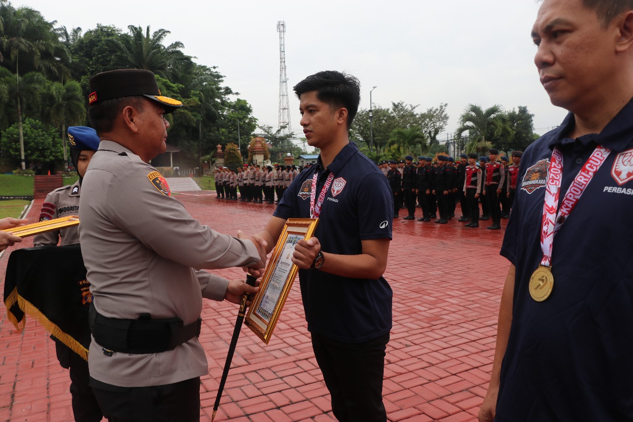 Usai pelaksanaan upacara, Kapolda Kaltim menyerahkan penghargaan khusus kepada Tim Basket Bhayangkara Kaltim yang berhasil meraih juara pertama dalam Kompetisi Kapolri Cup 2025. Prestasi ini disebut sebagai wujud nyata semangat sportivitas dan kerja keras yang patut dijadikan teladan.