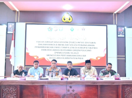 Sigli – Polres Pidie menggelar Focus Group Discussion (FGD) membahas penanggulangan Penambangan Emas Tanpa Izin (PETI) dengan pendekatan green policing, bertempat di Aula Wira Satya Polres Pidie, Jumat (3/10/2025).