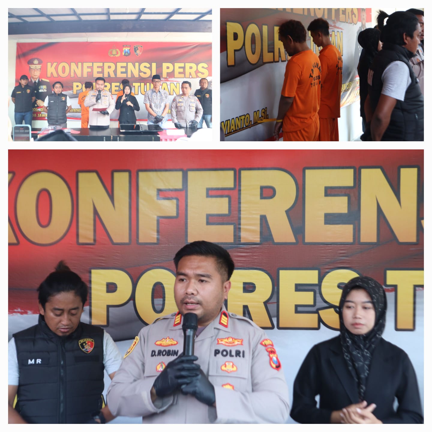 Saat konferensi pers pada Jumat (26/09/2025) Kapolres Tuban AKBP William Cornelis Tanasale, S.I.K., melalui Kasatreskrim AKP Dimas Robin Alexander menyampaikan bahwa keduanya merupakan pelaku spesialis pencurian dengan pemberatan dengan sasaran rumah maupun kendaraan bermotor.