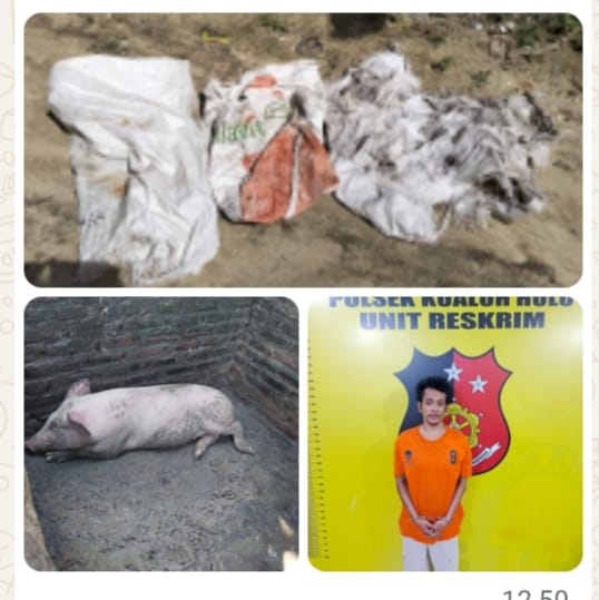Sebagai barang bukti 1 ( satu ) ekor ternak babi. dan 3 ( tiga ) buah karung goni. Korban mengalami kerugian Rp. 4000,000.,( empat juta rupiah ). Sedang pelaku JS masih dalam pencarian, perkara pencurian besi Rel k api di mana sebagian teman pelaku sudah di tahan.