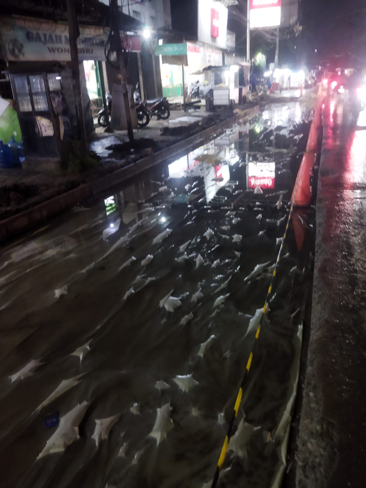 dan tidak akan bertahan selama 5 tahun kedepannya,dan kami yakin tahun depan akan mulai hancur LG seperti pengerjaan tahun yg lalu belum ada 1 tahun sudah hancur lg.Akan tetapi dari pantauan awak media saat melintas malah pengerjaan tersebut asal asalan dengan tidak ada nya rambu peringataan bagi pengguna jalan dan tidak ada nya besi untuk penguat cor.tutup.