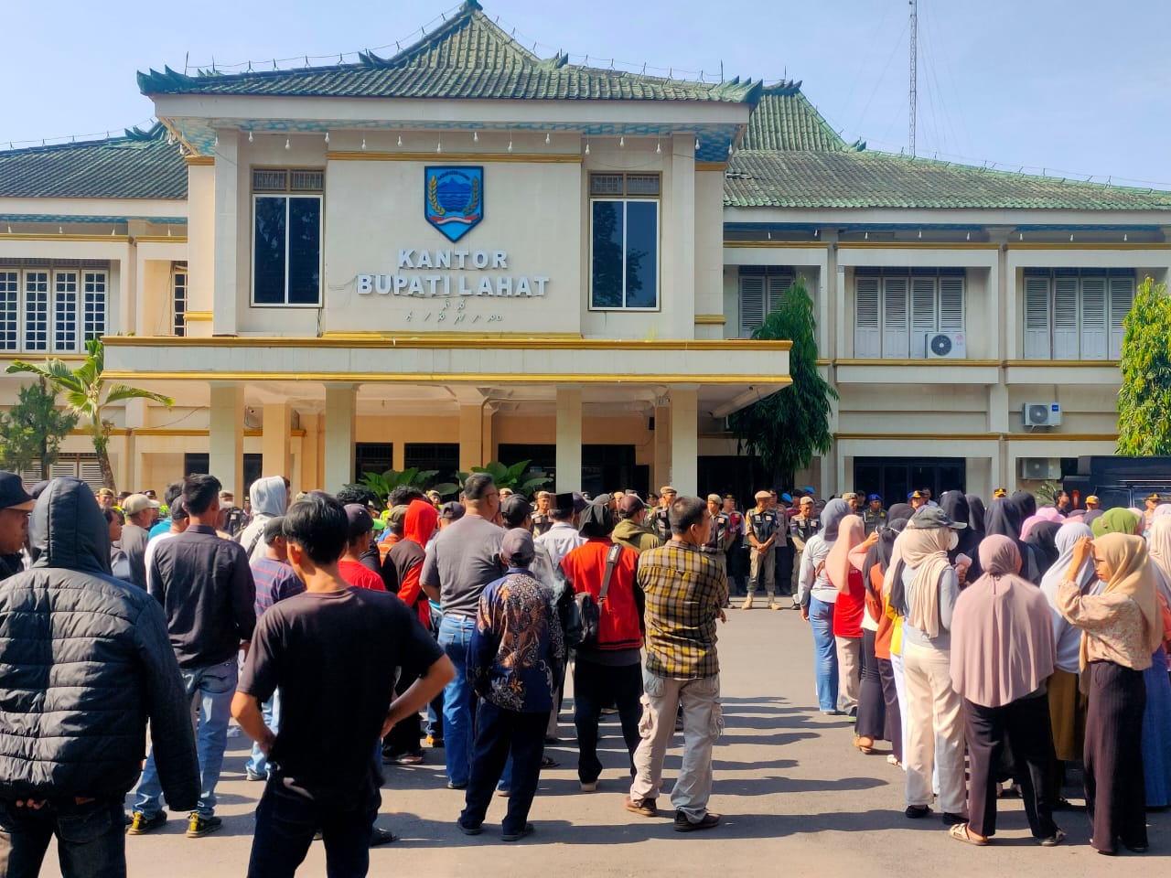 Dengan jumlah massa Lebih kurang 800 orang depan halaman kantor Pemerintah daerah kabupaten Lahat.