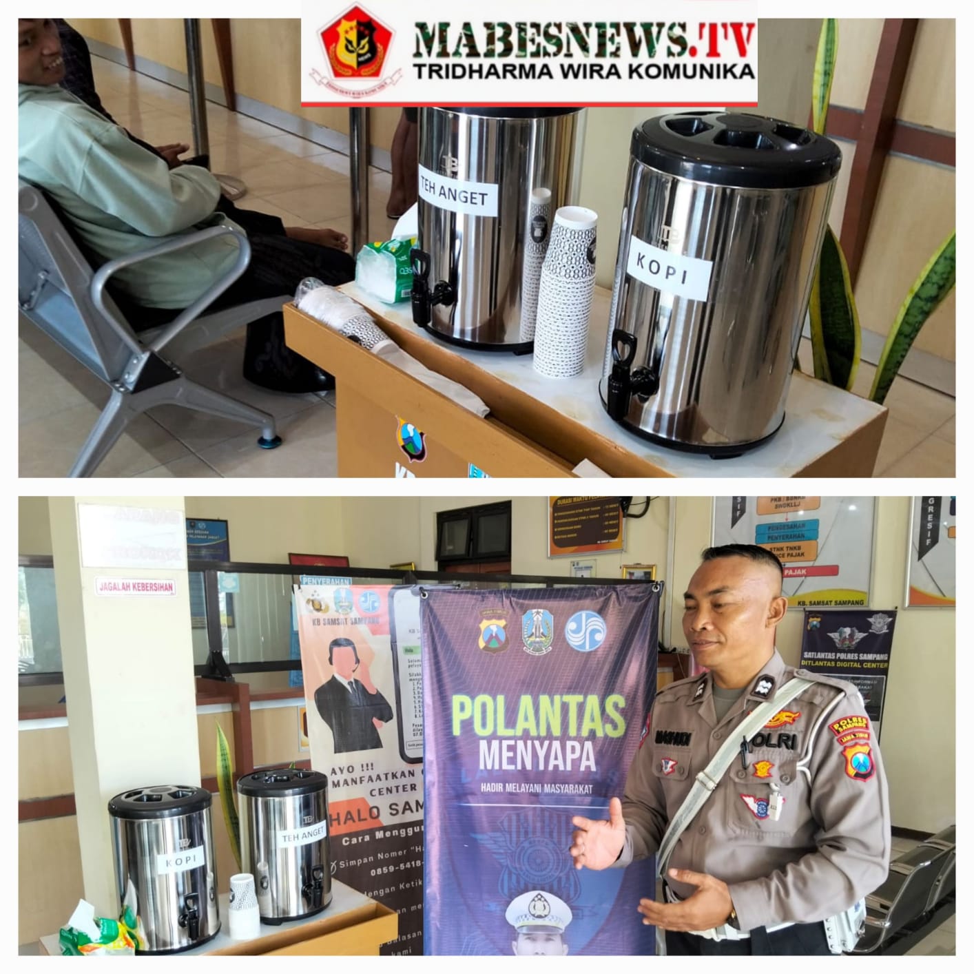 MABESNEWS.TV, SAMPANG Jawa Timur – Samsat Polres Sampang menunjukkan komitmennya dalam memberikan pelayanan ekstra kepada masyarakat dengan menyediakan teh dan kopi gratis siap saji di hari Jumat berkah melalui program “Lantas Menyapa”. Program ini bertujuan untuk membuat masyarakat yang antri dalam pengurusan perpanjangan STNK dan 5 tahunan merasa lebih nyaman dan tidak jenuh.