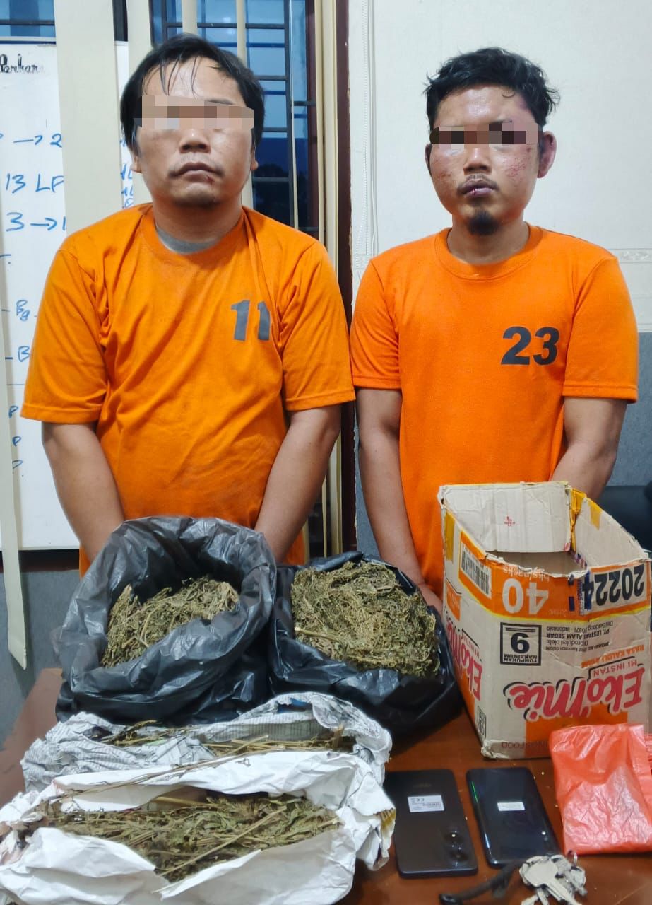 Kedua terduga pelaku yang diringkus, masing-masing, JJS alias Udin (31) dan JFH alias Nando (38) keduanya warga Bekasi. Dengan barang bukti narkotika jenis ganja kering seberat 1,4 Kg (brutto)