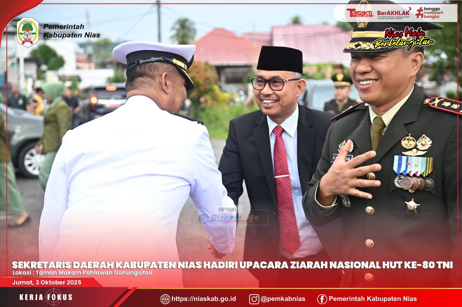 Nias | MabesNewsTV Sekretaris Daerah Kabupaten Nias, Samson P. Zai, S.H., M.H., menghadiri Upacara Ziarah Nasional dalam rangka Peringatan Hari Ulang Tahun (HUT) ke-80 Tentara Nasional Indonesia (TNI) Tahun 2025, Jumat, 03 Oktober 2025.